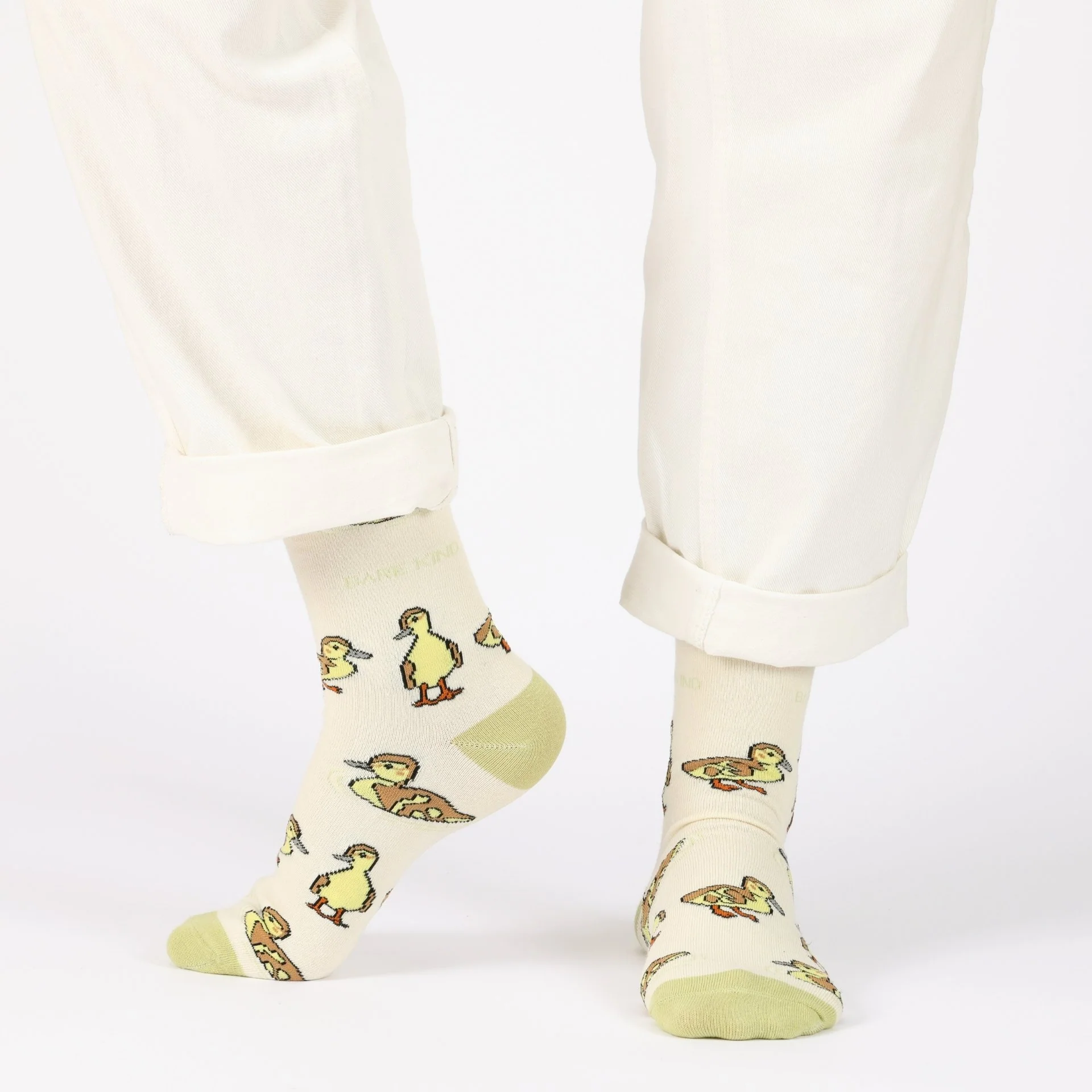 Barekind donate 10% of profits to the Farm Animal Sanctuary, protecting ducklings who may not be able to survive in the wild. These novelty socks make great work socks, gym socks, and dress socks. Duckling socks make the perfect, colourful gift for animal lovers.