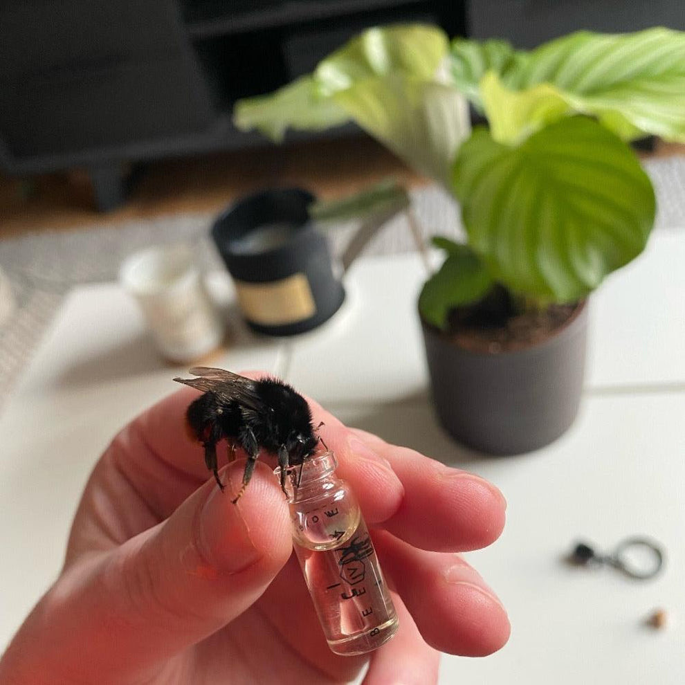 A best selling bee revival keyring with a QR bee identification tag attached.