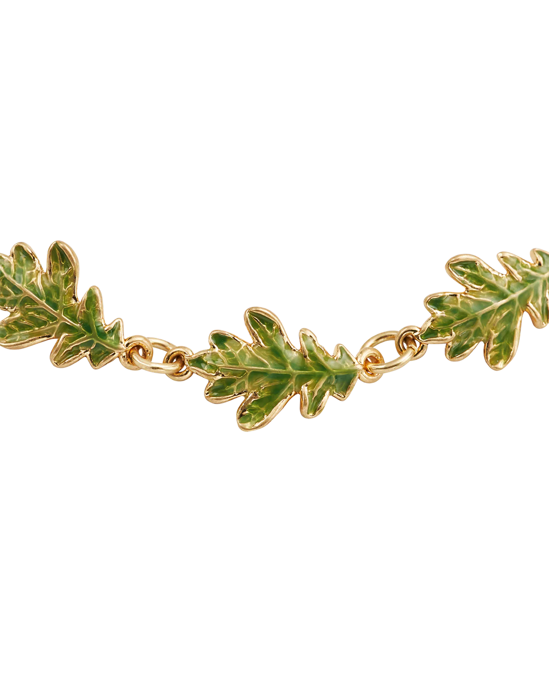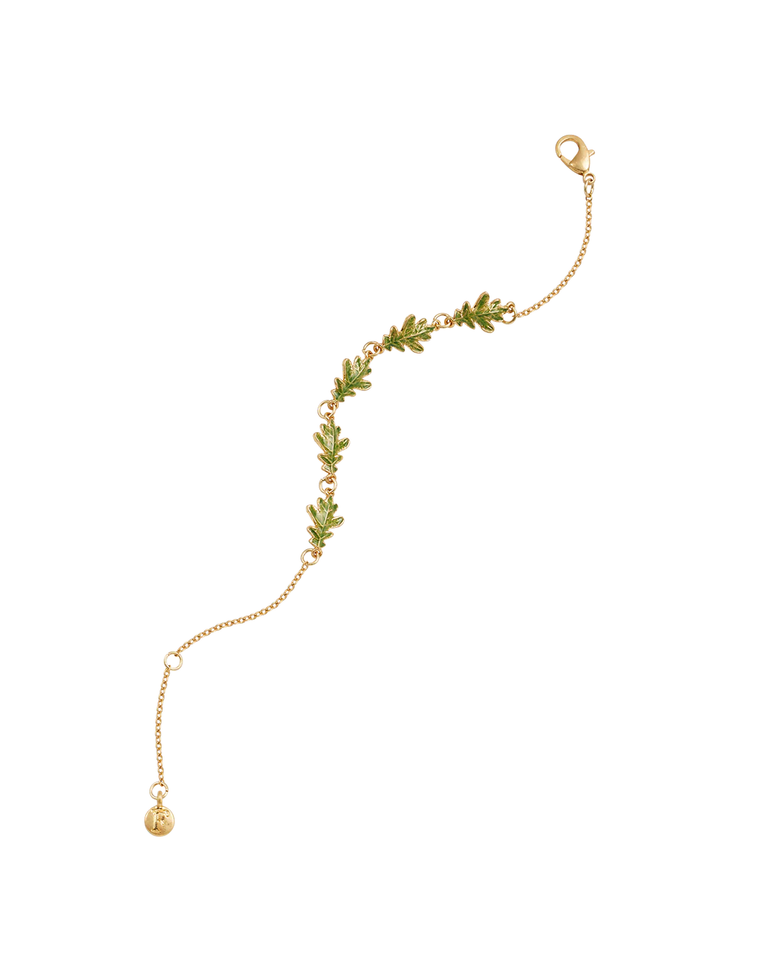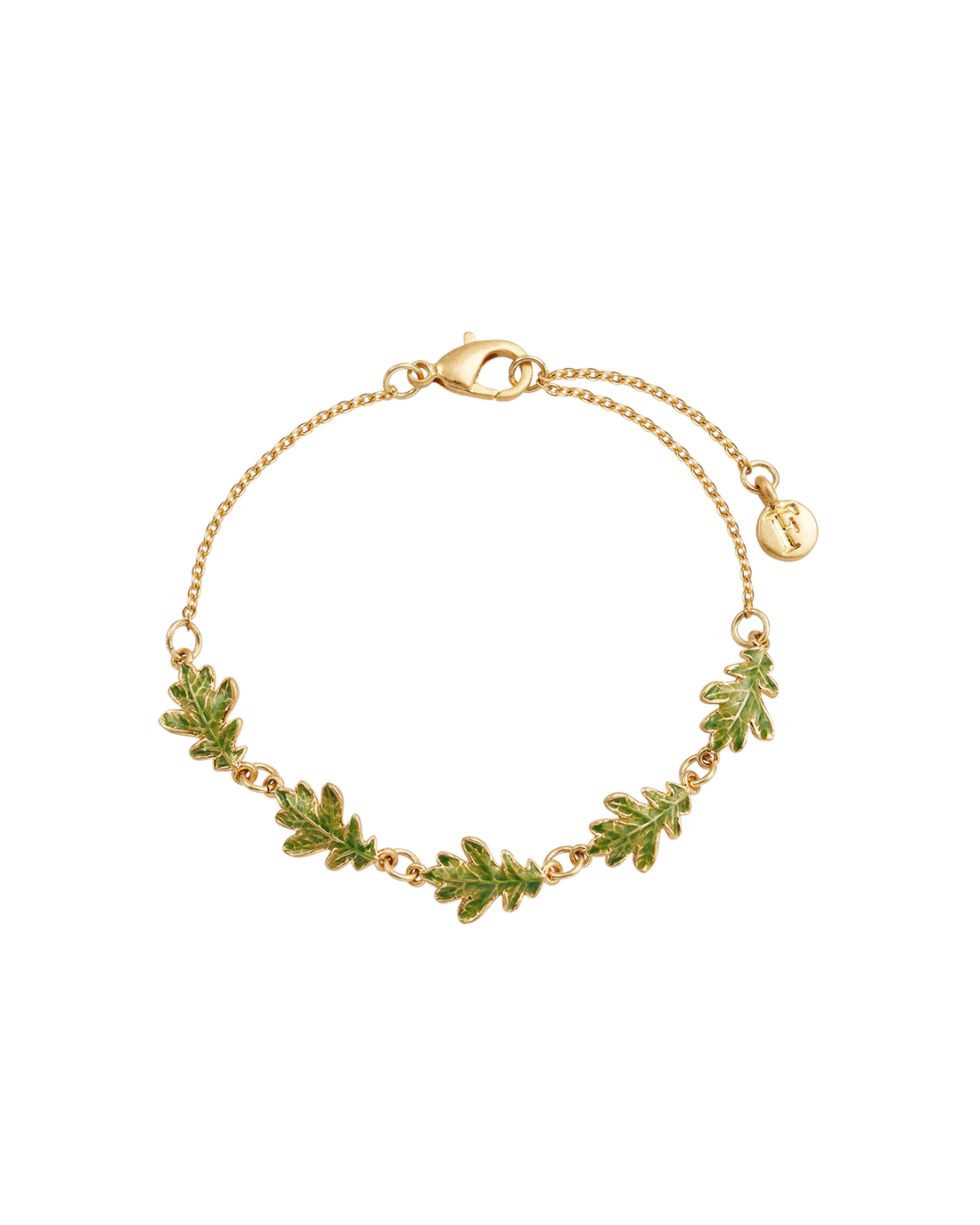 • Detail: Bracelet featuring a delicate hand-painted enamel oak leaf charm.