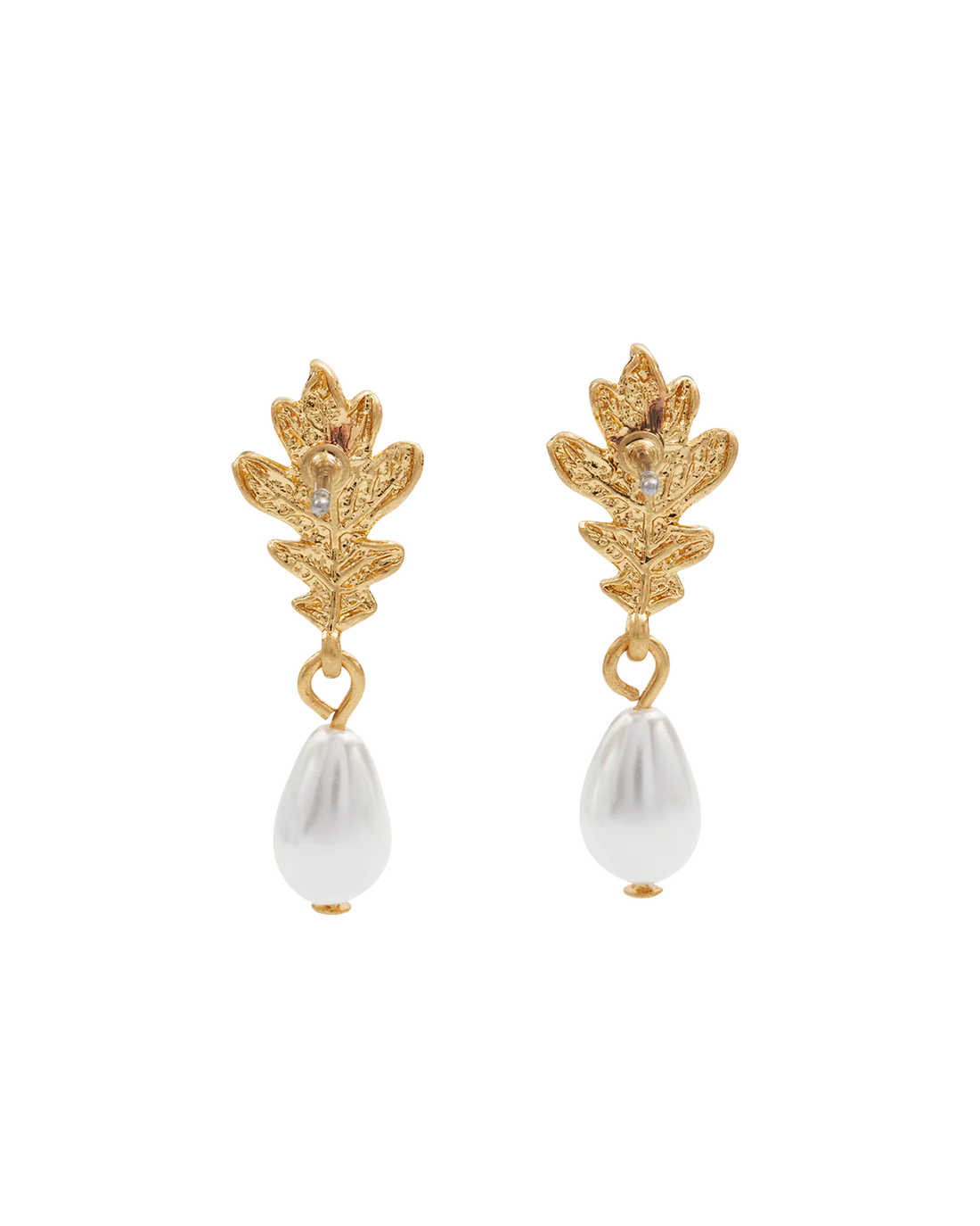 Fable Gold Oak Leaf Pearl Drop Earrings